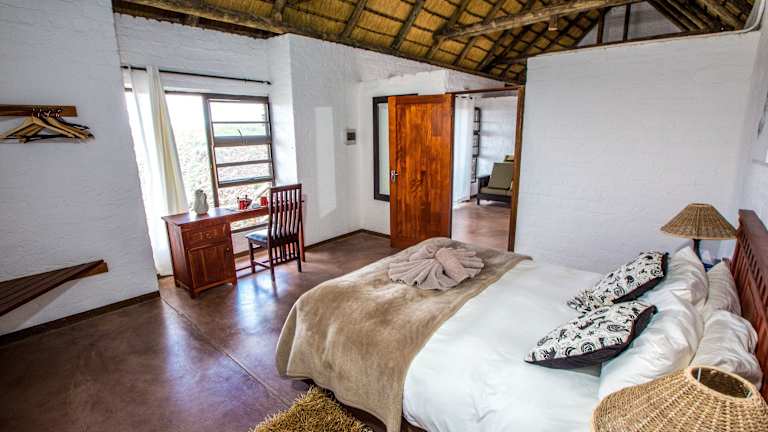 Die Zimmer im Hotel Grootberg Lodge sind in einzigartigen steinernen Lodges untergebracht und bieten Ihnen einen gemütlichen Rückzugsort mit einer wunderschönen Aussicht. Jedes Zimmer ist mit einer möblierten Holzterrasse ausgestattet, auf der Sie die Panoramaaussicht genießen können. Das Zimmer selbst ist liebevoll eingerichtet und verfügt über eine Reetdecke und afrikanisches Dekor. Im Badezimmer können Sie bei einer Dusche den Blick auf das Plateau genießen.