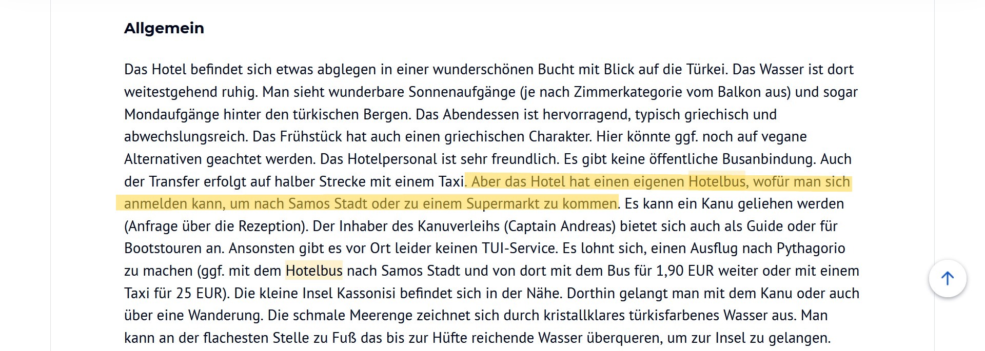 Danke, aber den weiß ich, ich meinte direkt in dem Örtchen, circa 300 m vom Hotel entfernt in der Kerveli Bucht….