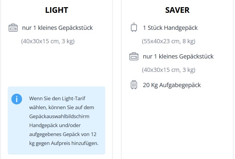 Übrigens sieht man bei Pegasus das inkl. Handgepäck nur wenn man auf Gepäck hinzu buchen klickt, ferner buchen die RV keinen Light Tarif.