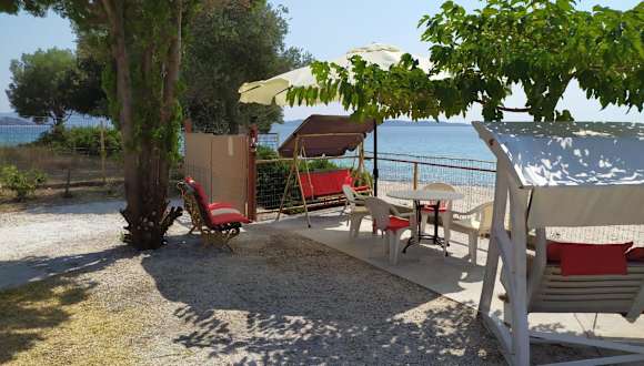 Die Unterkunft befindet sich direkt am Strand mit Meerblick und ist etwa 1,3 km vom Strand Nea Roda entfernt. Die Umgebung bietet Möglichkeiten zum Angeln.
