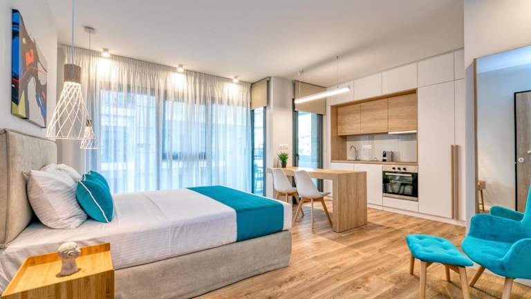 Die Wohneinheiten im δ193 sind klimatisiert und bieten einen angenehmen Aufenthalt. Die Zimmer verfügen über Parkettböden und ein eigenes Bad. Zur Ausstattung gehören auch ein Flachbild-TV, kostenfreies WLAN, ein Schreibtisch, ein Wohnzimmer und eine ausgestattete Küche. Jedes Zimmer verfügt zudem über einen Balkon mit Gartenblick, der zum Entspannen einlädt. Eine Mikrowelle, ein Kühlschrank, ein Backofen, ein Wasserkocher und eine Kaffeemaschine sind ebenfalls vorhanden, um Ihnen einen komfortablen Aufenthalt zu ermöglichen.
