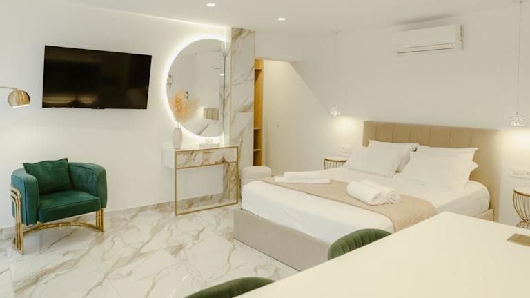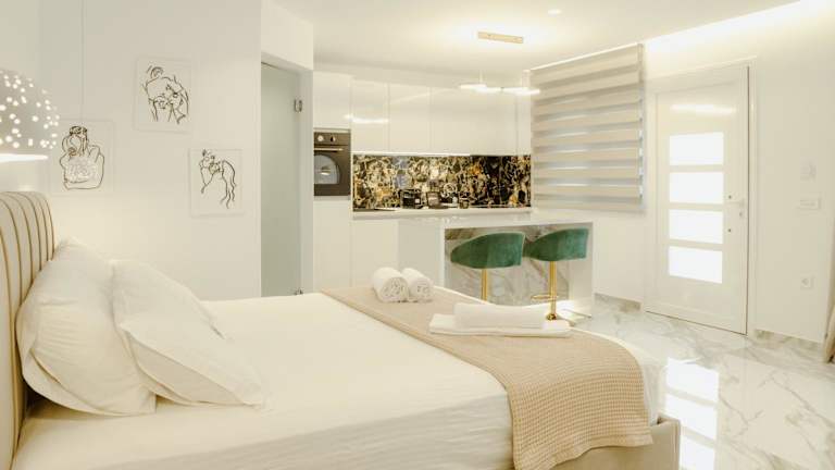 ΔVO luxury apartment bietet einen Garten und ist mit Klimaanlage ausgestattet. Die Unterkunft wird von einem privaten Gastgeber betrieben und es sind keine Junggesellen-/Junggesellinnenabschiede oder ähnliche Feiern erlaubt. Die Mindestalterregelung für den Check-in beträgt 18 Jahre.