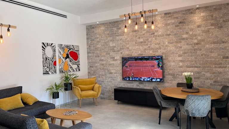 Das בית במושבה - נוף ארבל bietet eine komfortable Unterkunft mit einer voll ausgestatteten Küche, einem Balkon und kostenfreien Parkplätzen. Das Apartment verfügt über 2 Schlafzimmer, einen Flachbildfernseher, Klimaanlage und ein Wohnzimmer, in dem Sie sich entspannen können.