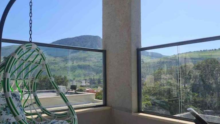 דירה מפנקת מעל הכנרת bietet einen Blick auf die Berge und verfügt über Übernachtungsmöglichkeiten mit Balkon. Die Unterkunft ist klimatisiert und umfasst eine Terrasse mit Stadtblick sowie eine gut ausgestattete Küche.