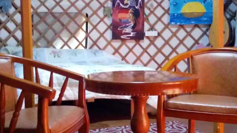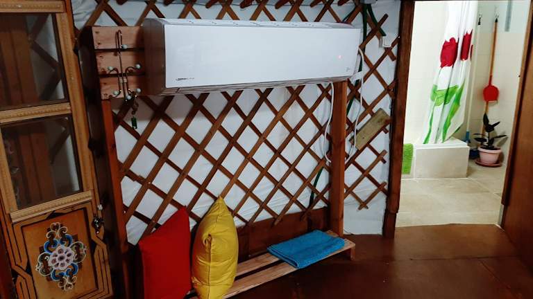 Das Apartment im Spirit Yourt bietet ein komfortables Schlafzimmer mit allen Annehmlichkeiten, die Sie für einen angenehmen Aufenthalt benötigen. Das Bad ist voll ausgestattet und bietet Ihnen frische Bettwäsche und Handtücher. Sie können sich im gemütlichen Wohnbereich mit Flachbild-Kabel-TV entspannen und Ihre Mahlzeiten im Essbereich genießen. Die Küche ist voll ausgestattet, so dass Sie Ihre eigenen Mahlzeiten zubereiten können. Der Balkon bietet einen schönen Blick auf den Garten und ist ein perfekter Ort, um die frische Luft zu genießen.