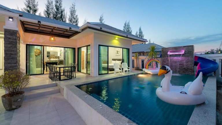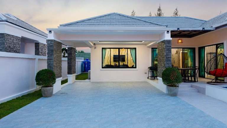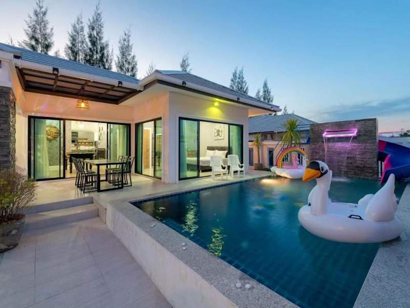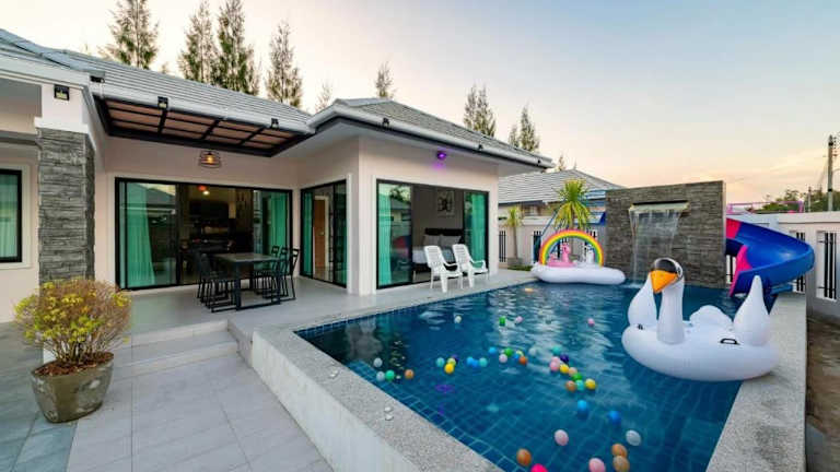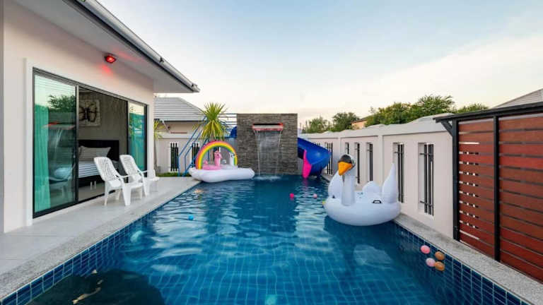 Genießen Sie Ihren Aufenthalt im บ้านซีซ่าเฮ้าส์พูลวิลล่าหัวหิน in Hua Hin. Diese Villa bietet Ihnen kostenfreies WLAN, einen Außenpool und eine Terrasse. Freuen Sie sich auf den Komfort von 3 Schlafzimmern, einer voll ausgestatteten Küche und 2 Badezimmern. Der kostenlose Privatparkplatz und der Grill stehen Ihnen ebenfalls zur Verfügung. Die Villa liegt in der Nähe des Bahnhofs Hua Hin und des Marktdorfs Hua Hin. Der Flughafen Hua Hin ist nur 14 km entfernt.