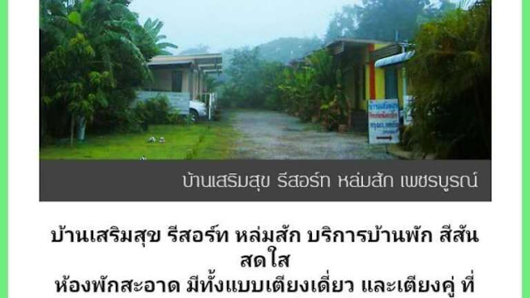 Das บ้านเสริมสุข รีสอร์ท หล่มสัก in Lom Sak ist eine ideale Unterkunft für Reisende, die Ruhe und Entspannung suchen. Das Gästehaus liegt günstig im Bezirk Lom Sak und bietet kostenfreies WLAN und kostenlose Parkplätze. Die Zimmer sind geräumig und verfügen über einen Balkon, ein eigenes Bad und einen Flachbild-TV. Die Terrasse des Gästehauses lädt zum Verweilen ein. In der Umgebung gibt es zahlreiche Sehenswürdigkeiten wie den Phu Tub Berk Mountain. Der Flughafen Phetchabun ist nur 26 km entfernt.