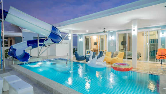 Das Hotel พลอยพูลวิลล่า ชะอำ 1 Ploy Poolvilla Cha-am 1 bietet eine Unterkunft mit einem Außenpool, einer Gemeinschaftslounge und einer Gemeinschaftsküche. Es gibt eine Terrasse sowie einen Garten mit Grillmöglichkeiten. Kostenfreies WLAN und eine kostenlose Parkmöglichkeit stehen zur Verfügung.