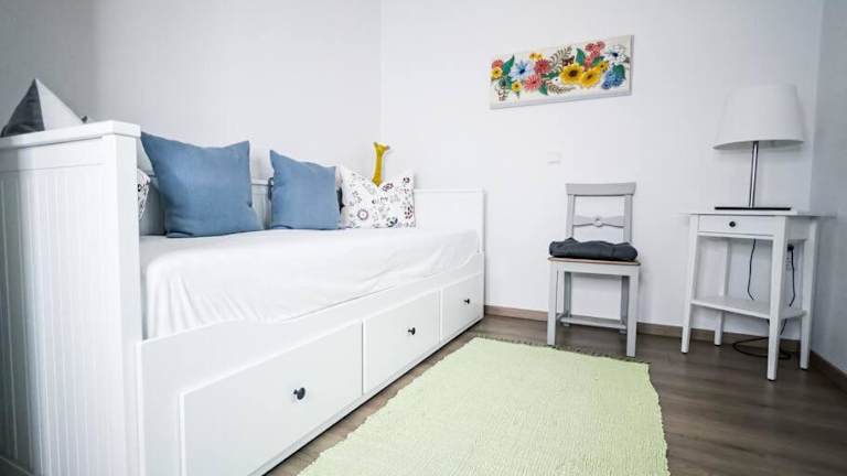 Die Ferienwohnung verfügt über ein Wohnzimmer mit einem Flachbild-TV und Kabelkanälen, eine voll ausgestattete Küche mit Kühlschrank und Geschirrspüler sowie ein Badezimmer mit Dusche. Handtücher und Bettwäsche werden bereitgestellt.