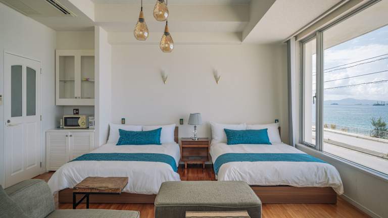 Die Wohneinheiten im Hotel 美らビーチ sind mit einem Wasserkocher ausgestattet und verfügen über ein eigenes Badezimmer mit einem Bidet und kostenlosen Pflegeprodukten. Einige Zimmer bieten einen Meerblick. Außerdem sind die Zimmer mit Klimaanlage und einem Flachbild-TV ausgestattet.