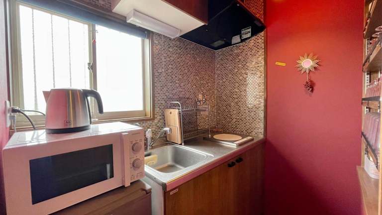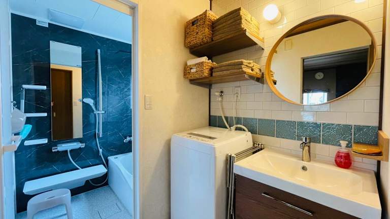 Das klimatisierte Ferienhaus im Kujyukuri TURF! verfügt über ein gemütliches Schlafzimmer, ein Wohnzimmer und eine voll ausgestattete Küche mit einem Kühlschrank. Das Badezimmer ist mit einem Bidet und einem Haartrockner ausgestattet. Kostenloses WLAN ist ebenfalls vorhanden.