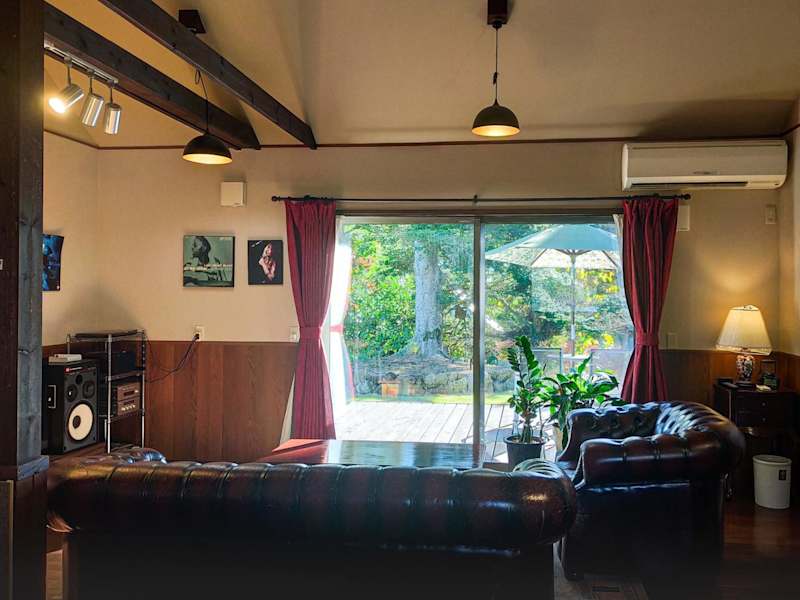 Die Unterkunft 伊豆高原 桜並木通りに面したコテージJiro's bietet eine angenehme Atmosphäre mit einem Garten und einer Terrasse.