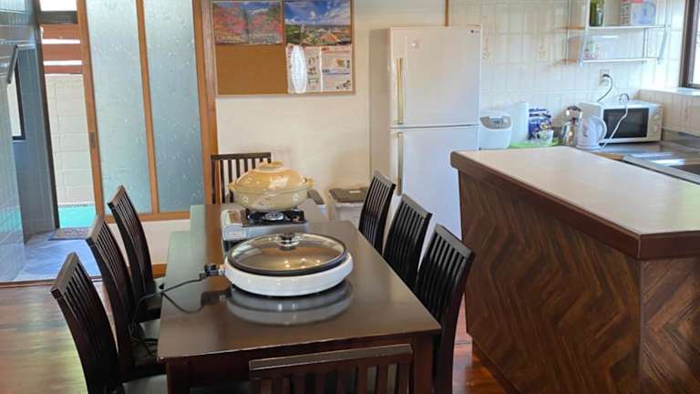 Das Ferienhaus 島宿 AGARI家 bietet einen Balkon mit Bergblick sowie einen eigenen Pool, Garten und Grillmöglichkeiten. Zur Ausstattung gehören kostenloses WLAN und ein privater Parkplatz.