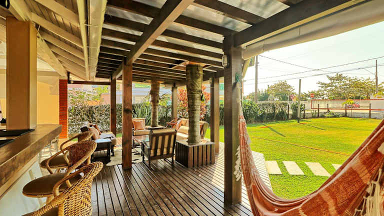Das Casa show beach tennis 50 m praia de Palmas #001 befindet sich in Governador Celso Ramos, einer malerischen Stadt in der Region Santa Catarina. Die Unterkunft liegt nur 90 m vom Strand Praia de Palmas entfernt, wo Sie Sonne, Sand und Meer genießen können. Die Umgebung bietet auch schöne Landschaften und eine ruhige Atmosphäre, ideal zum Entspannen und Abschalten. Der internationale Flughafen Florianopolis-Hercilio Luz liegt etwa 62 km entfernt und ist bequem zu erreichen.