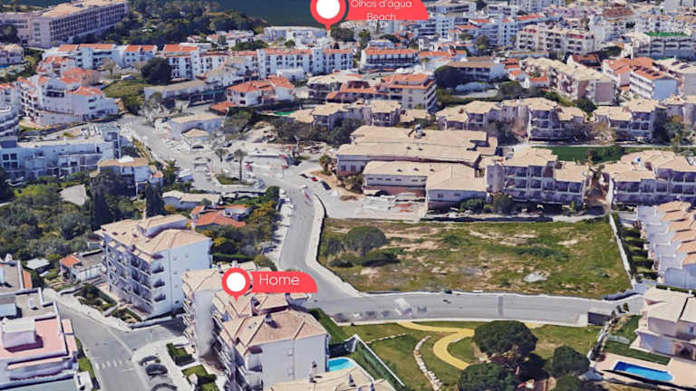 Die Unterkunft befindet sich ungefähr 800 m vom Strand Praia do Barranco das Belharucas entfernt. Weitere nahegelegene Strände sind Praia Olhos de Água, Olheiros de Agua Doce und Praia Maria Luísa. Die Entfernung zur Altstadt von Albufeira beträgt 8,7 km und zum Yachthafen Albufeira 11 km. Der nächstgelegene Flughafen, der Flughafen Faro, ist 36 km entfernt.
