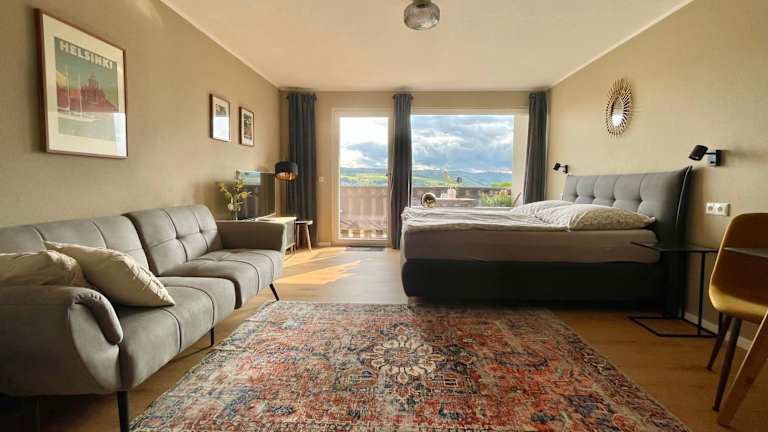 Das #1 Studioapartment mit Loreleyblick bietet eine komfortable Unterkunft mit einem gemütlichen Schlafzimmer und einem modernen Badezimmer. Das Apartment verfügt über eine voll ausgestattete Küche, in der Sie Ihre eigenen Mahlzeiten zubereiten können. Ein Balkon mit herrlichem Bergblick rundet das Angebot ab. Kostenloses WLAN ist in allen Bereichen des Apartments verfügbar. Bettwäsche und Handtücher werden gestellt.