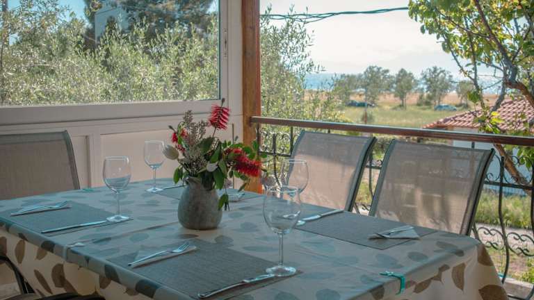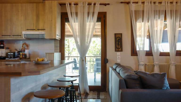 Die Unterkunft befindet sich etwa 100 Meter vom Strand Nea Iraklia entfernt und bietet einen Blick auf das Meer. Die Strände Sahara und Kampos sind 1,3 km bzw. 1,8 km entfernt. Der Flughafen Thessaloniki ist 28 km entfernt.