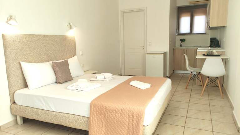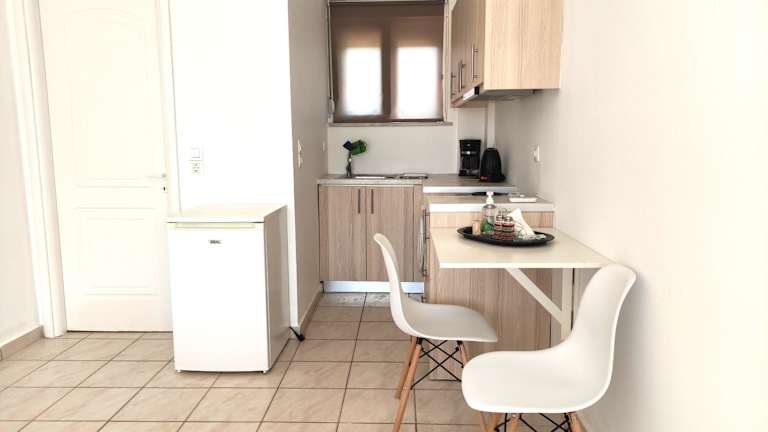 In den #6 Giorgos & Chara Apartments haben Sie die Möglichkeit, Ihre eigenen Mahlzeiten zuzubereiten, da die Apartments über eine voll ausgestattete Küche verfügen. Alternativ können Sie auch eines der Restaurants in der Nähe besuchen und die lokale Küche probieren. Es gibt eine große Auswahl an Restaurants, Bars und Cafés in der Umgebung, so dass für jeden Geschmack etwas dabei ist.