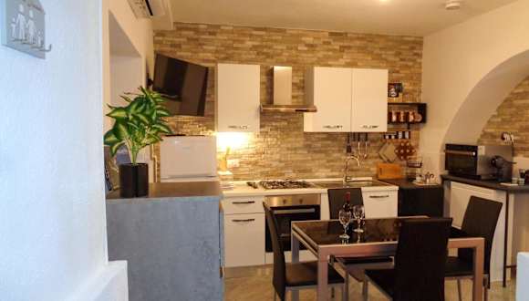 Die Ferienwohnung ist klimatisiert und umfasst 1 Schlafzimmer, ein Wohnzimmer und eine voll ausgestattete Küche, die mit einem Kühlschrank und einer Kaffeemaschine ausgestattet ist. Zudem stehen ein Badezimmer mit Bidet und Dusche sowie Handtücher und Bettwäsche zur Verfügung.