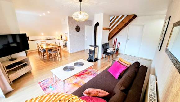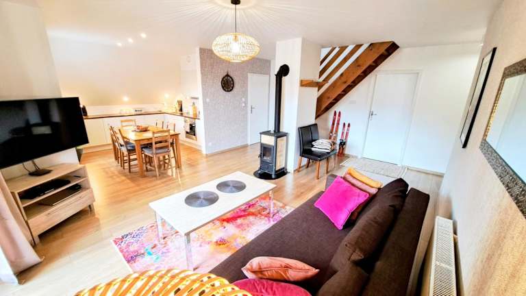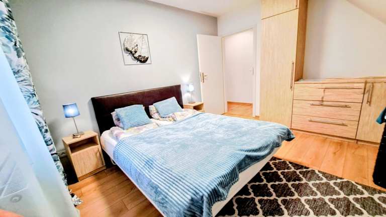 Die Ferienwohnung verfügt über eine Küchenzeile ausgestattet mit Kühlschrank, Geschirrspüler und Ofen. Sie bietet ein Wohnzimmer mit Essbereich, 3 Schlafzimmer sowie 2 Badezimmer mit Dusche. Handtücher und Bettwäsche werden bereitgestellt. Ein Blu-ray-Player ist ebenfalls vorhanden.