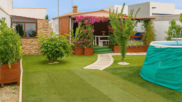 Das Chalet La Buganvilla bietet Gartenblick und umfasst eine Terrasse sowie einen Balkon. Es handelt sich um ein Ferienhaus, das mit Klimaanlage ausgestattet ist und aus 2 Schlafzimmern, einem Wohnzimmer, einer voll ausgestatteten Küche und einem Badezimmer besteht.