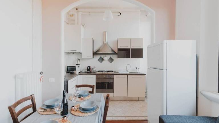 Das klimatisierte Appartamento elegante con suite bietet Platz für bis zu 4 Personen. Es verfügt über 2 Schlafzimmer und 1 Badezimmer mit Bidet, Dusche und kostenlosen Pflegeprodukten. Die Küche ist voll ausgestattet mit einem Kühlschrank, einem Geschirrspüler, einem Backofen, einer Kaffeemaschine und einem Wasserkocher. Genießen Sie den Komfort und die Annehmlichkeiten dieses stilvollen Apartments.