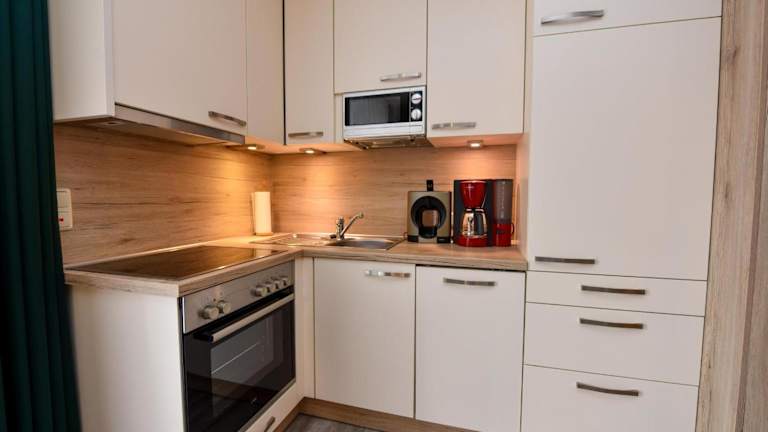 Das Appartement KOR21 ist im Erdgeschoss gelegen und verfügt über ein Schlafzimmer, ein Wohnzimmer, eine gut ausgestattete Küche mit Kühlschrank und Geschirrspüler sowie einen Fernseher. Bettwäsche und Handtücher sind nicht im Übernachtungspreis inbegriffen, können aber gegen eine Gebühr von 22 EUR pro Person von der Agentur gemietet oder selbst mitgebracht werden. WLAN ist in allen Bereichen verfügbar, und die Zimmer sind mit Heizung ausgestattet.