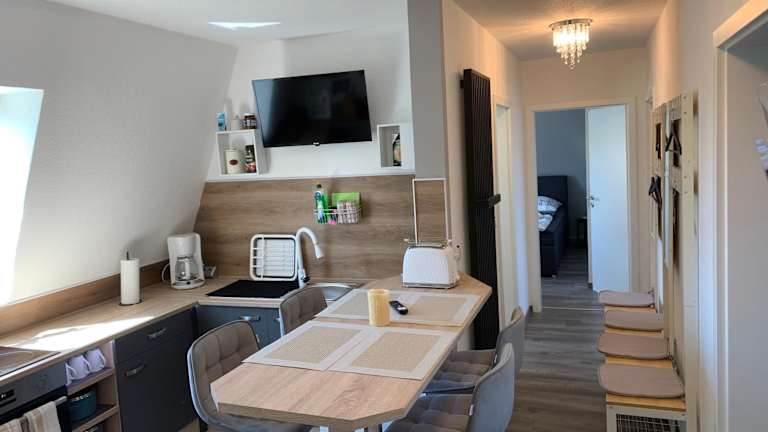 Die Ferienwohnung verfügt über 3 Schlafzimmer, eine Küche mit Kühlschrank und Geschirrspüler sowie ein Badezimmer mit Dusche, Haartrockner und Waschmaschine. Bettwäsche und Handtücher sind in der Unterkunft inklusive. Waipu-TV und High-Speed-WLAN sind ebenfalls vorhanden.