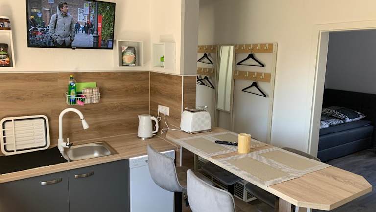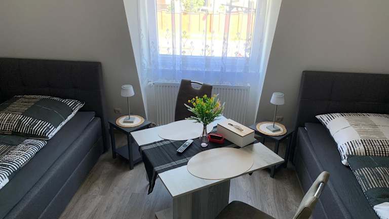 Fewo Benz ist eine exklusive Ferienwohnung mit modernem Ambiente, die über 3 Einzelzimmer verfügt und Platz für bis zu 6 Gäste bietet. Die Unterkunft ist sowohl voll ausgestattet als auch bequem und bietet Stadtblick. Grillmöglichkeiten sind ebenfalls vorhanden.