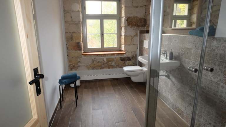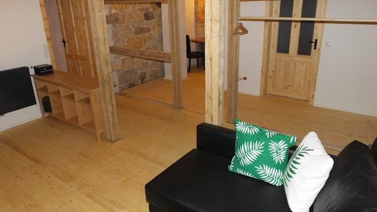 Die Unterkunft "Gesindestube" - Hammergut Neidberg bietet eine Ferienwohnung mit einem Balkon und Blick auf den Fluss. Die Ausstattung umfasst kostenfreies WLAN und einen Privatparkplatz, die an der Unterkunft verfügbar sind.