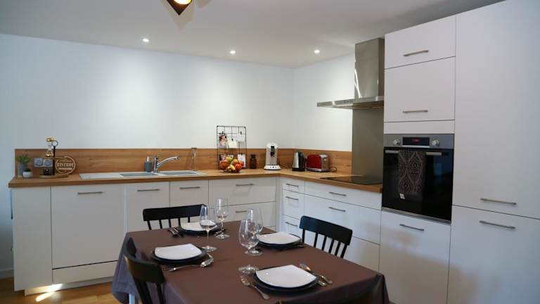 Die Ferienwohnung besteht aus einem Schlafzimmer und einem Wohnzimmer. Die Küche ist vollständig ausgestattet mit einem Kühlschrank und einer Kaffeemaschine. Das Badezimmer ist mit einer Dusche und einem Haartrockner ausgestattet. Handtücher und Bettwäsche werden zur Verfügung gestellt.