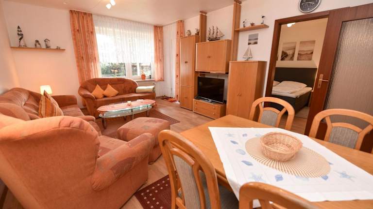 Das Landhaus Hubertus Appartement HUB005 ist eine Ferienwohnung im Erdgeschoss und bietet den Gästen die Möglichkeit zu einem komfortablen Aufenthalt in Duhnen.