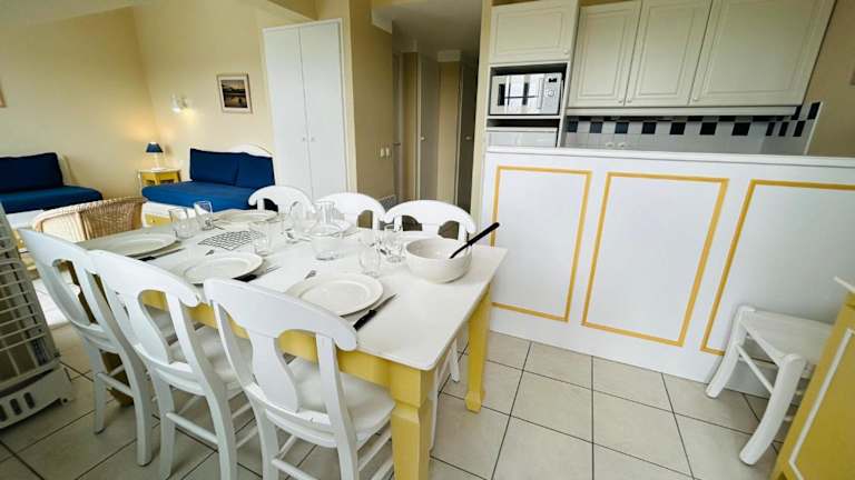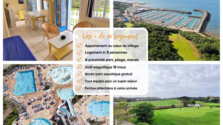 Die Ferienwohnung "LE VENDEE GOLF" bietet Platz für bis zu 8 Personen und ist in einem Ferienanlage mit Zugang zu einem saisonalen Außenpool und einem privaten Strandbereich. Die Unterkunft verfügt über einen Conciergeservice und diverse Freizeitmöglichkeiten.