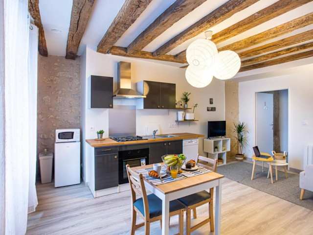 Das LE VINCI Échappée Amboisienne avec sauna partagé ist die ideale Unterkunft für Ihren Aufenthalt in Amboise. Das Apartment liegt weniger als 1 km vom Château d'Amboise entfernt und bietet Ihnen eine komfortable Unterkunft mit Zugang zu einer Sauna. Genießen Sie den atemberaubenden Blick auf die Stadt und den Fluss und profitieren Sie von kostenfreiem WLAN. Das Apartment verfügt über eine gut ausgestattete Küche, ein modernes Badezimmer und bietet Ihnen Handtücher und Bettwäsche. An der Rezeption erhalten Sie wertvolle Informationen über die Umgebung. Der Bahnhof Amboise und das Herrenhaus Clos Lucé sind ebenfalls gut erreichbar.