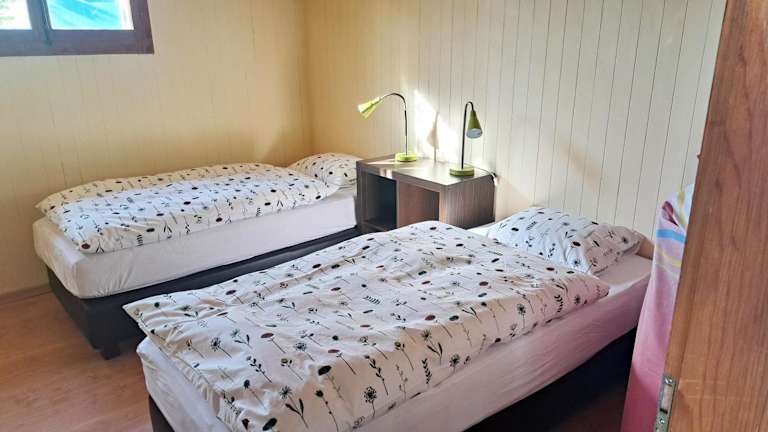 Das Ferienhaus verfügt über zwei Schlafzimmer, ein Wohnzimmer mit Flachbild-TV sowie eine gut ausgestattete Küche mit Kühlschrank und Geschirrspüler. Ein Badezimmer mit Dusche ist ebenfalls vorhanden. Handtücher und Bettwäsche werden bereitgestellt.