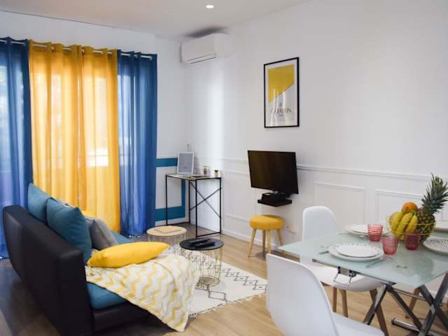 Die Ferienwohnung besteht aus einem Schlafzimmer, einem Wohnzimmer und einer voll ausgestatteten Küche, die einen Kühlschrank und eine Kaffeemaschine einschließt. Zudem gibt es ein Badezimmer mit Dusche und kostenlosen Pflegeprodukten. Handtücher und Bettwäsche werden zur Verfügung gestellt.