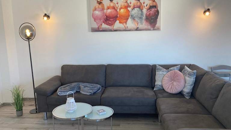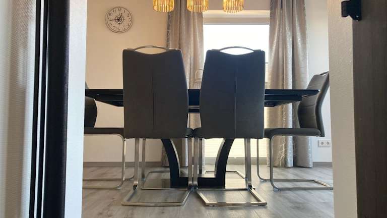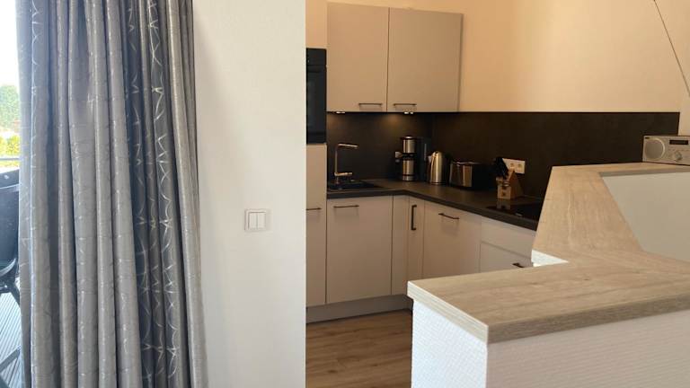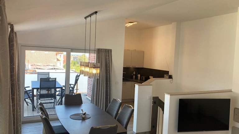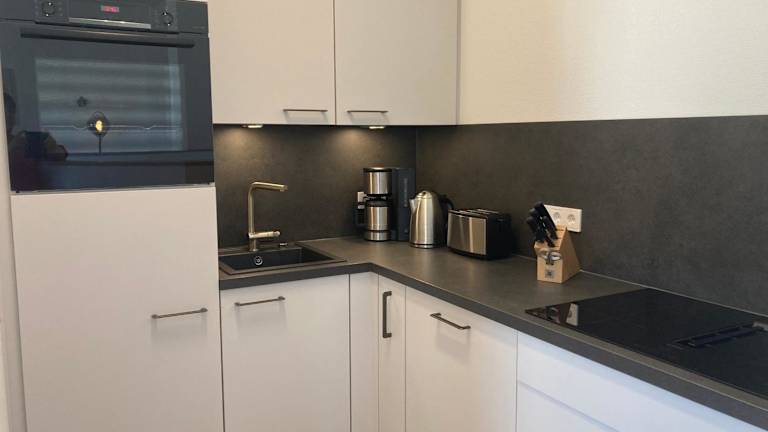 Die Ferienwohnung verfügt über drei Schlafzimmer, einen TV sowie eine voll ausgestattete Küche. Zu den Küchengeräten gehören ein Kühlschrank, ein Geschirrspüler, eine Waschmaschine, ein Ofen und eine Herdplatte.