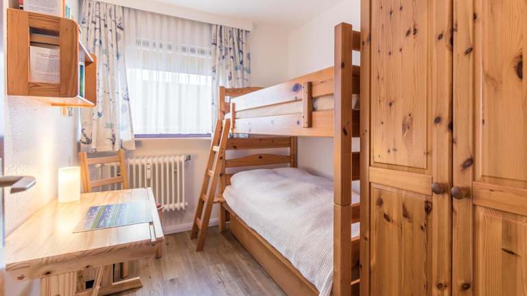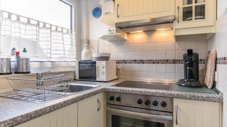 Die Ferienwohnung verfügt über 2 Schlafzimmer sowie eine Küche, die mit einem Kühlschrank und einem Ofen ausgestattet ist.
