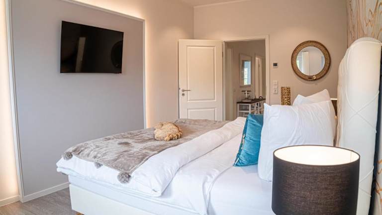 Die Ferienwohnung verfügt über zwei Schlafzimmer und ist mit einem Flachbild-TV mit Satellitenkanälen ausgestattet. Die voll ausgestattete Küche bietet Kühlschrank, Geschirrspüler, Waschmaschine, Ofen und Mikrowelle. Handtücher und Bettwäsche sind in der Unterkunft vorhanden. Die 'Panorama-Residenz' Apartment 27 verfügt zudem über eine Sauna.