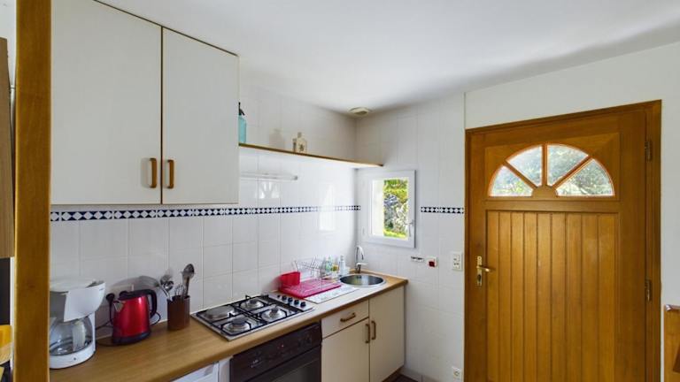 Das Ferienhaus verfügt über eine Terrasse mit Meerblick, eine gut ausgestattete Küche mit Kühlschrank, Ofen und Mikrowelle, sowie ein Badezimmer mit Dusche und Haartrockner. Zudem gibt es einen TV.
