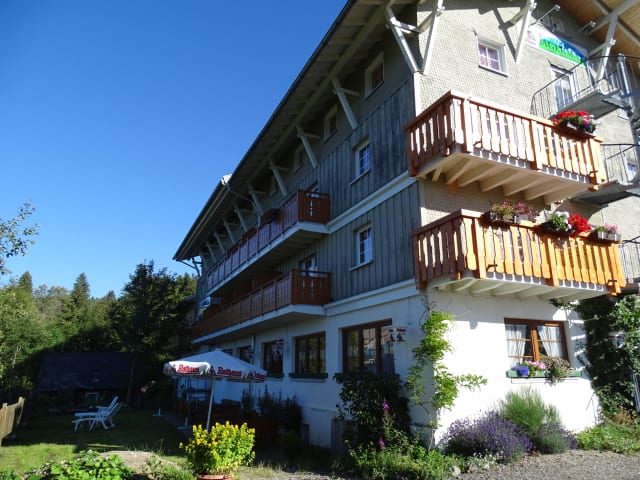 Suchen Sie in Feldberg (Schwarzwald) eine Unterkunft mit Hüttencharakter für Ihren Winterurlaub? Dann ist Ihnen ´S Jägermatt hervorragend geeignet. Dieses Haus gehört zu den mit „sehr gut“ bewerteten Hotels in Deutschland. Es hat das Prädikat HolidayCheck Quality Selection im Jahr 2014 an Land gezogen. Das Haus der Natur, der Feldberg und der Wichtelfpad im Auerhahnwald befinden sich in einigen 100 Metern Entfernung vom Berghotel Jägermatt. Viele Highlights, wie der Feldsee und der Wasserfall St. Blasien, sind in relativ kurzer Fahrentfernung gelegen.