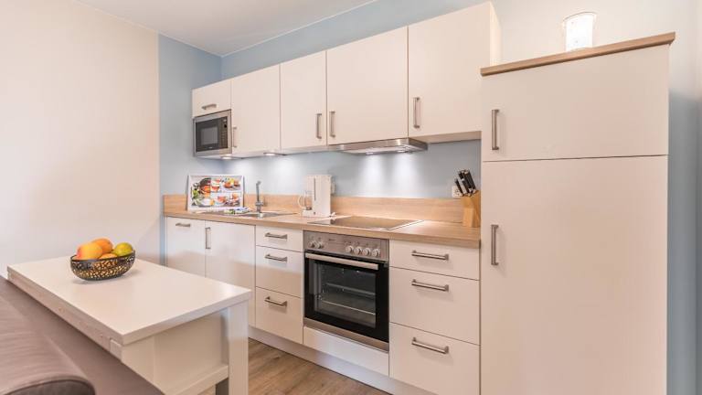 Die Ferienwohnung umfasst ein Schlafzimmer, ein Wohnzimmer sowie eine voll ausgestattete Küche mit Kühlschrank und Wasserkocher. Zudem ist ein Badezimmer mit Dusche und Haartrockner vorhanden. Kostenfreies WLAN und ein TV sind ebenfalls Teil der Ausstattung. Bettwäsche und Handtücher sind nicht im Preis inbegriffen, können jedoch gegen eine zusätzliche Gebühr von 23 EUR pro Person gemietet werden.