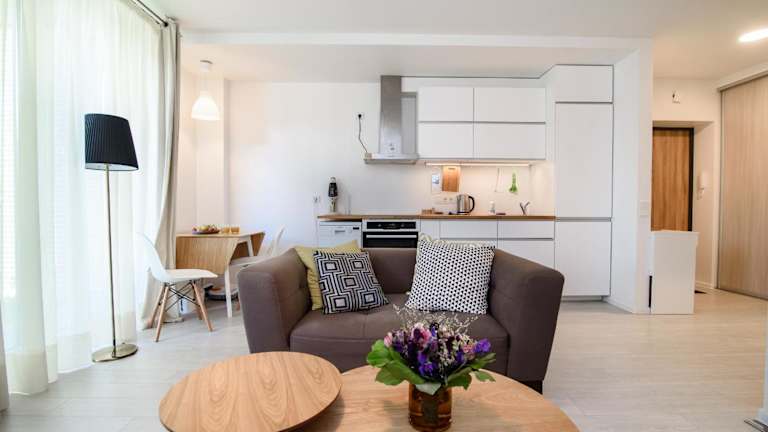 #stayhere - Comfy & Stylish Studio with Green Patio close to Old Town bietet einen Garten, kostenloses WLAN und eine Waschmaschine. Die Ferienwohnung ist sorgfältig gestaltet und verbindet Komfort mit einem stylischen Ambiente.