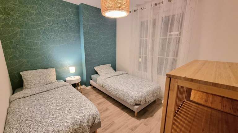 Die Ferienwohnung verfügt über zwei Schlafzimmer, ein Wohnzimmer und eine voll ausgestattete Küche, die mit einem Kühlschrank sowie einer Kaffeemaschine ausgestattet ist. Das Badezimmer bietet eine Badewanne und kostenlose Pflegeprodukte. Handtücher und Bettwäsche werden bereitgestellt.