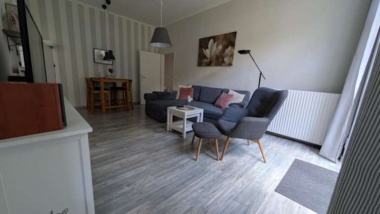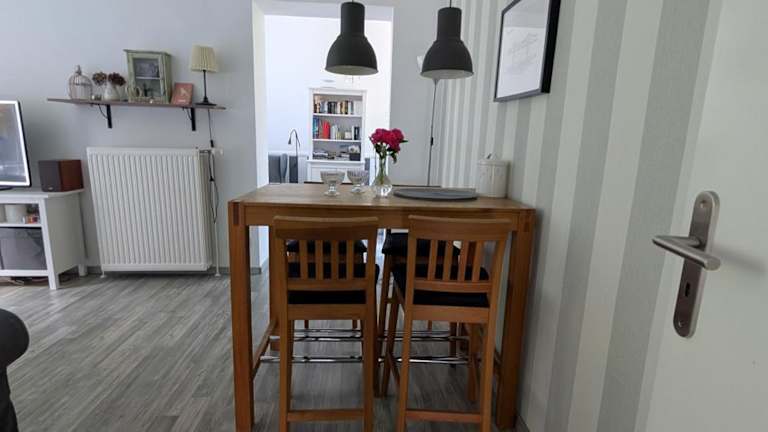 Die Ferienwohnung verfügt über eine Küchenzeile, die mit einem Kühlschrank, einem Geschirrspüler und einer Kaffeemaschine ausgestattet ist. Handtücher und Bettwäsche werden zur Verfügung gestellt.