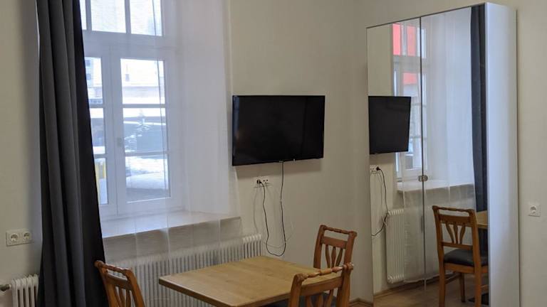 Das Studio besteht aus einem Schlafzimmer, einem Wohnzimmer sowie einem Badezimmer mit Dusche und Haartrockner. Handtücher und Bettwäsche werden bereitgestellt.