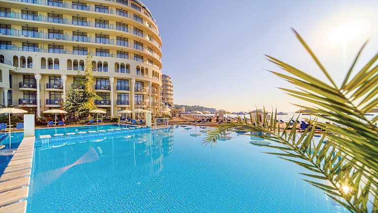 Erleben Sie einen unvergesslichen Aufenthalt im Azalia Beach Hotel Balneo & SPA im Sts. Constantine and Helena Resort an der nördlichen Schwarzmeerküste. Dieses moderne Hotelkomplex bietet eine einzigartige Kombination aus alternativer Architektur, wunderschönem Meerblick, goldenen Stränden und umfangreichen Wellnesseinrichtungen. Genießen Sie köstliche Speisen im stilvollen Hauptrestaurant mit Panoramaterrasse, entspannen Sie in den Thermalwasser-Swimmingpools und lassen Sie sich im Spa-Center verwöhnen. Das Hotel bietet auch eine Vielzahl von Sport- und Freizeitangeboten sowie ein Unterhaltungsprogramm für Kinder.