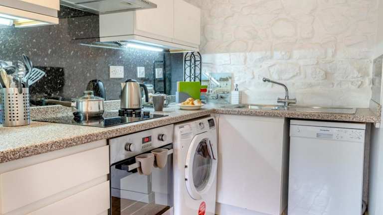 Das Ferienhaus bietet ein separates Schlafzimmer, eine voll ausgestattete Küche mit Kühlschrank und Geschirrspüler sowie ein Badezimmer. Handtücher und Bettwäsche werden zur Verfügung gestellt.