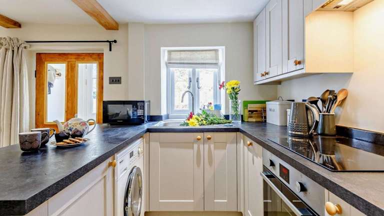 Das Ferienhaus verfügt über ein separates Schlafzimmer, eine voll ausgestattete Küche mit Kühlschrank und Geschirrspüler sowie ein Badezimmer. Handtücher und Bettwäsche werden bereitgestellt.