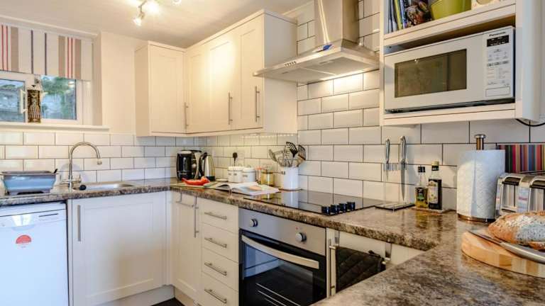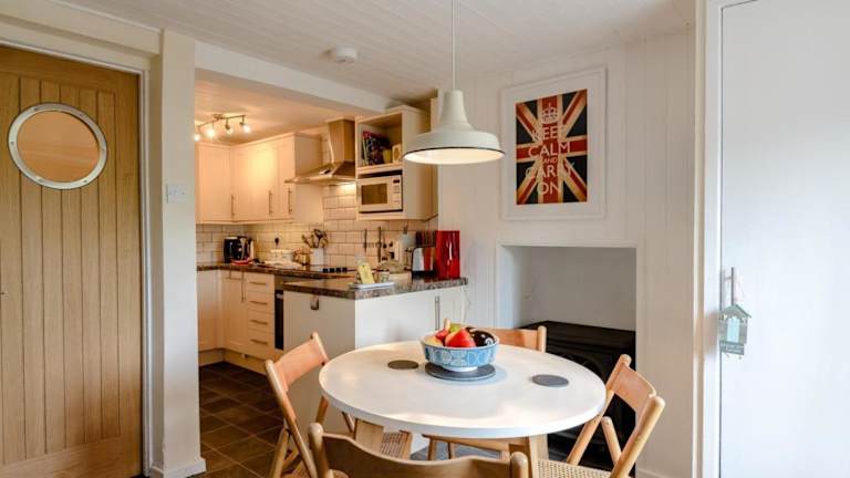 Das Ferienhaus verfügt über ein Schlafzimmer, eine voll ausgestattete Küche mit Kühlschrank und Geschirrspüler, eine Waschmaschine sowie ein Badezimmer. Handtücher und Bettwäsche werden bereitgestellt.